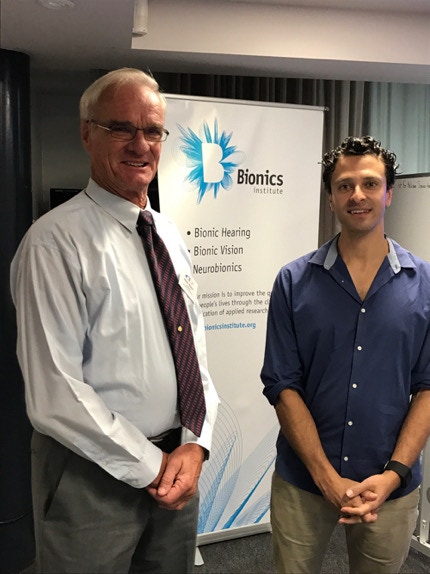 VLF Chairman John Beale PDG with Dr Wes Thevathasan, who is the current Victorian Lions Foundation Neurobionics Research Fellow as at March 2017